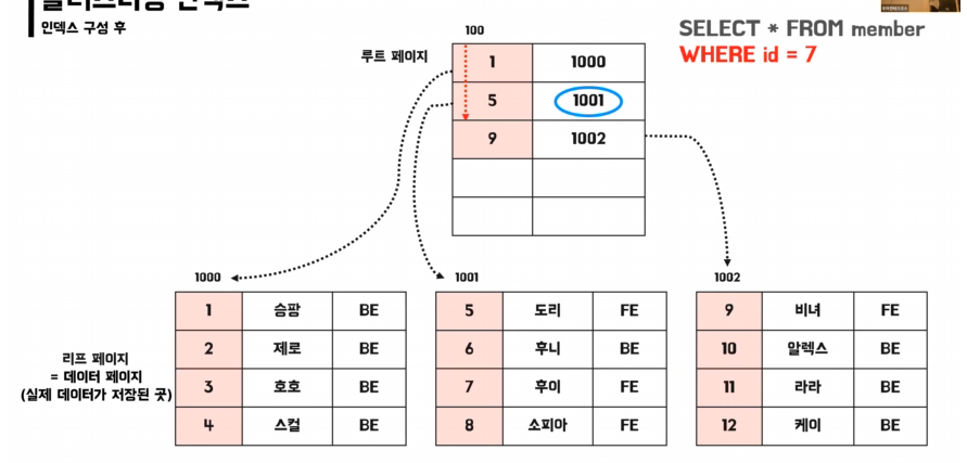 - 리프 페이지에 실제 데이터 페이지 주소를 담고 있음