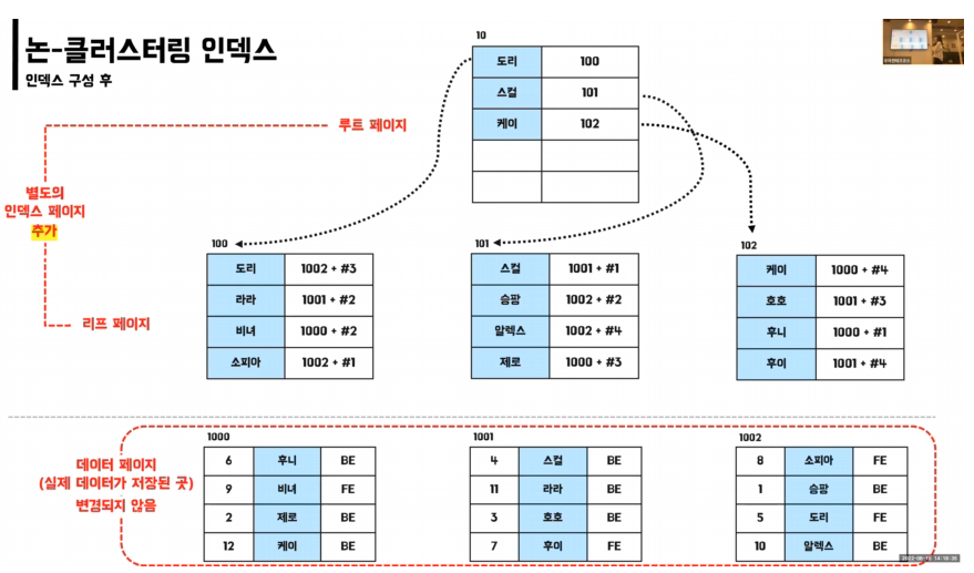 - 별도의 인덱스 페이지 생성 → 추가 공간 필요