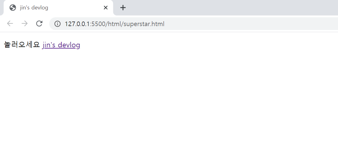 여기에 이동할 주소를 넣으면된다. 실행시키면 다음과 같은 jin's devolg로 이동할 수있는 링크가 걸린다.